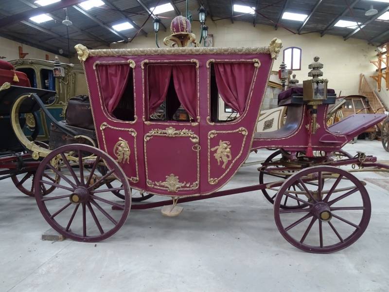 Grande voiture d'apparat, de cérémonie ou de ville, caractérisée par la richesse et la profusion de ses matériaux (bois doré, bronze, cuir et tissus précieux).