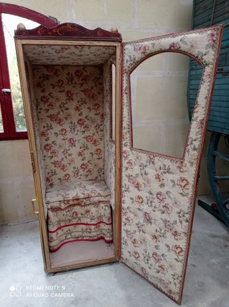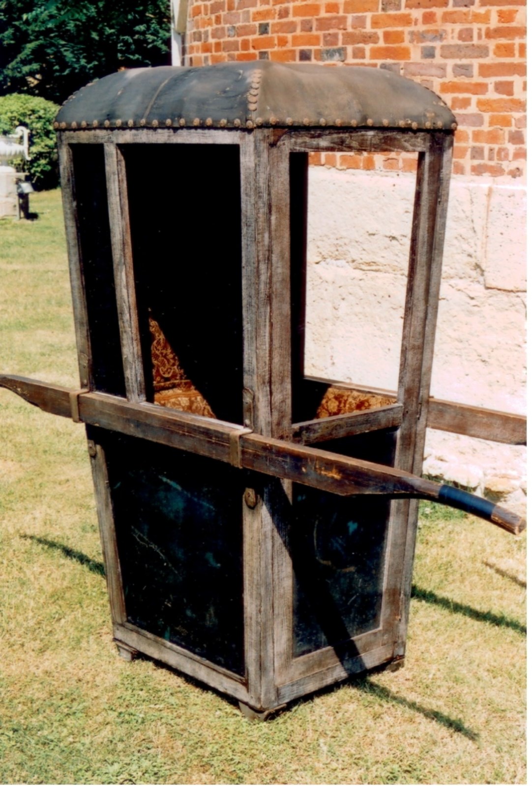 Cabine munie de brancards et portée à bras d'hommes, la chaise à porteurs était utilisée pour se déplacer individuellement.