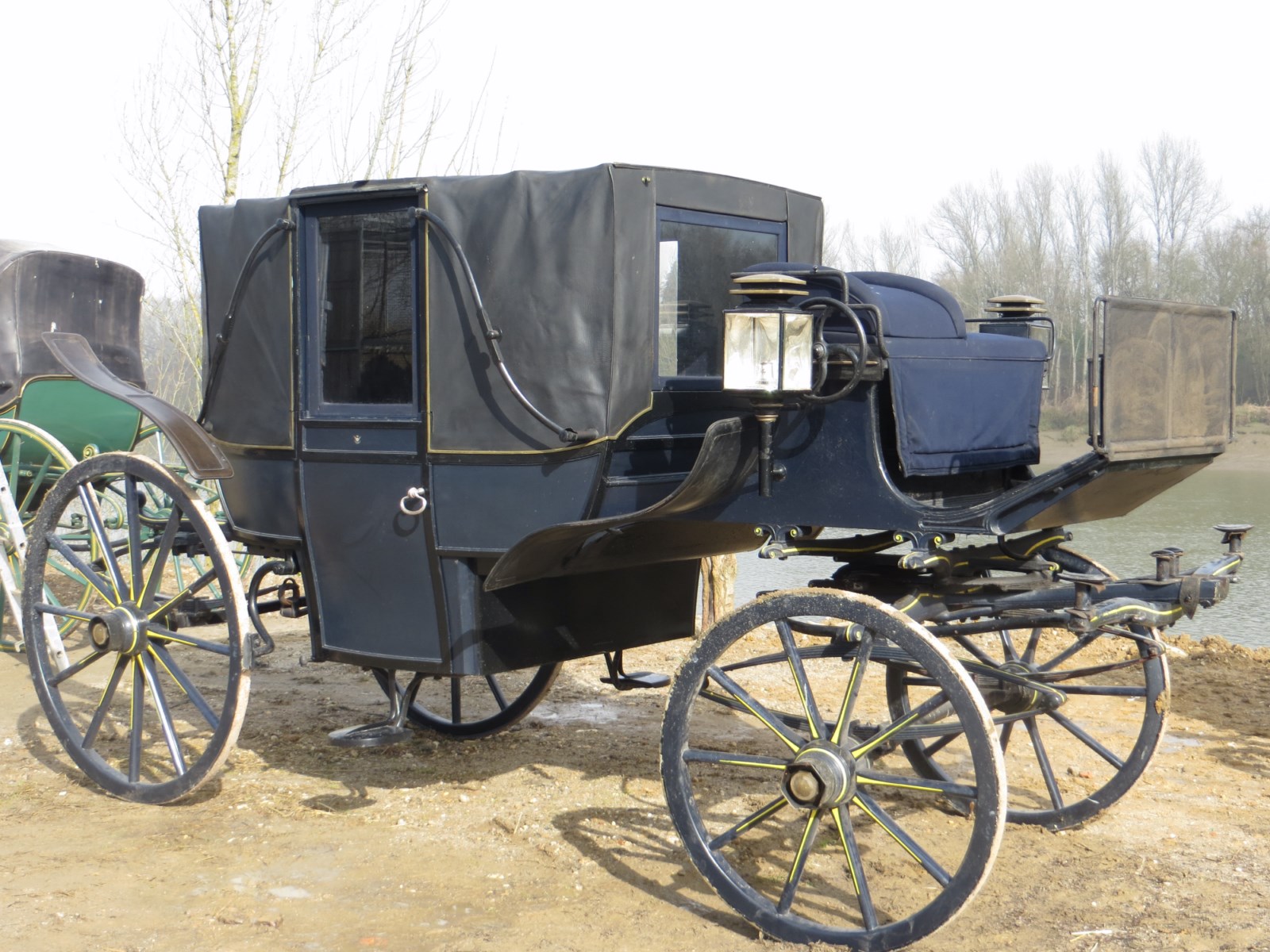 Voiture à deux fonds et deux portières, pour quatre passagers, dont la caractéristique est de pouvoir se découvrir ou se fermer entièrement au moyen de deux capotes de cuir se rejoignant au-dessus des portières.