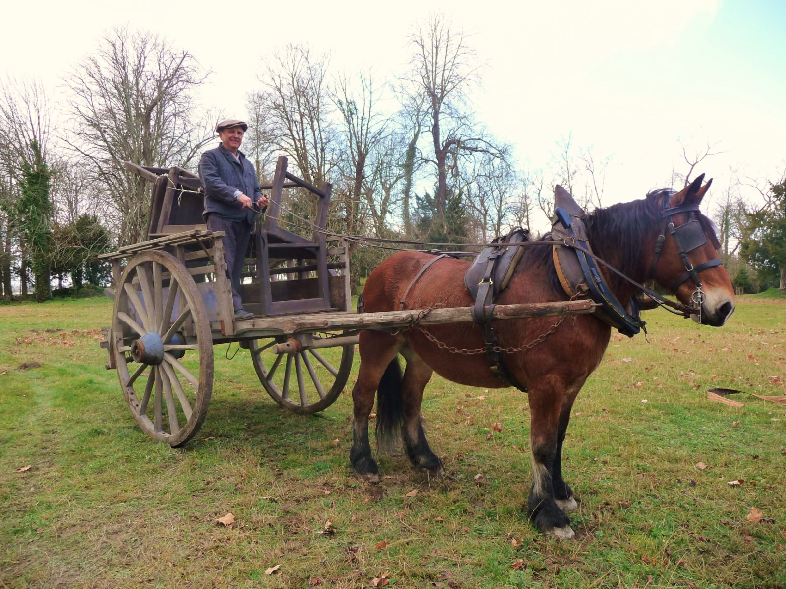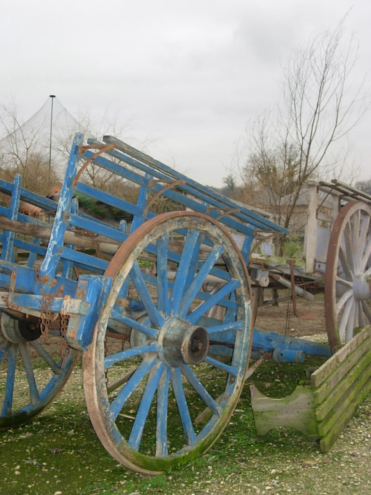 Charrette dont les roues sont surmontées d'une pièce de bois cintrée ou d'un assemblage de plusieurs pièces de bois.