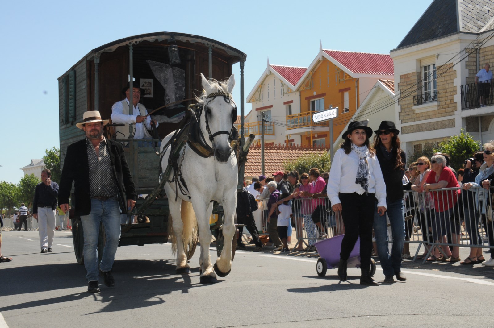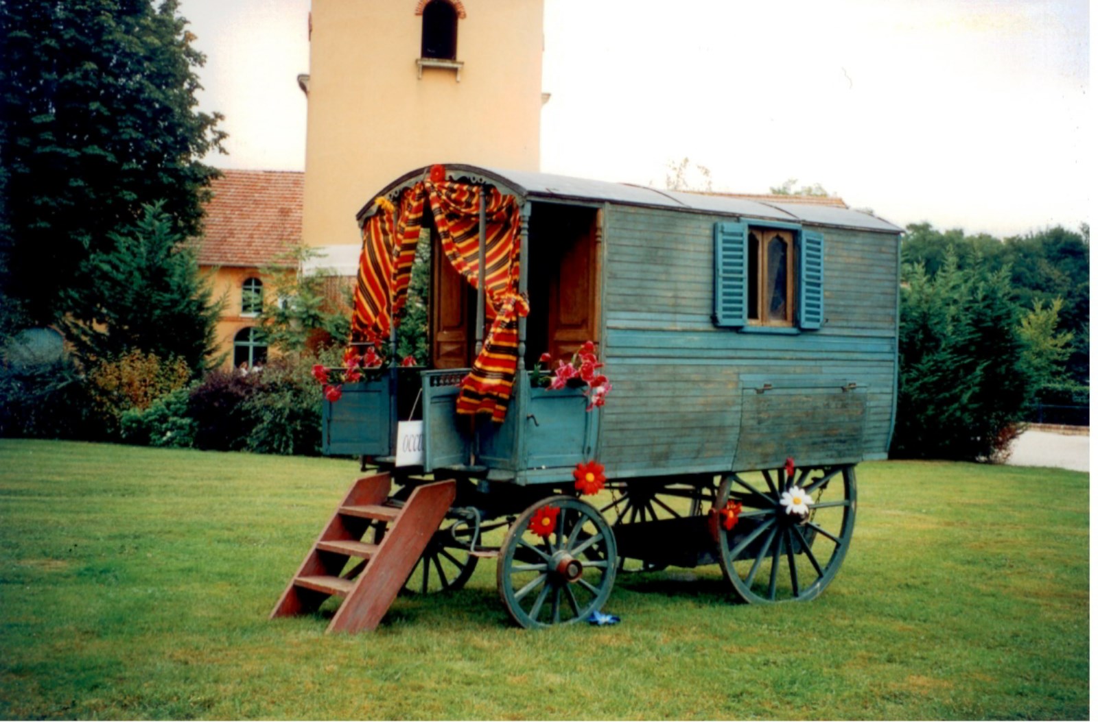 Grande voiture fermée servant de demeure ambulante à des familles de commerçants, de forains, de comédiens, allant de localité en localité pour exercer leur métier.