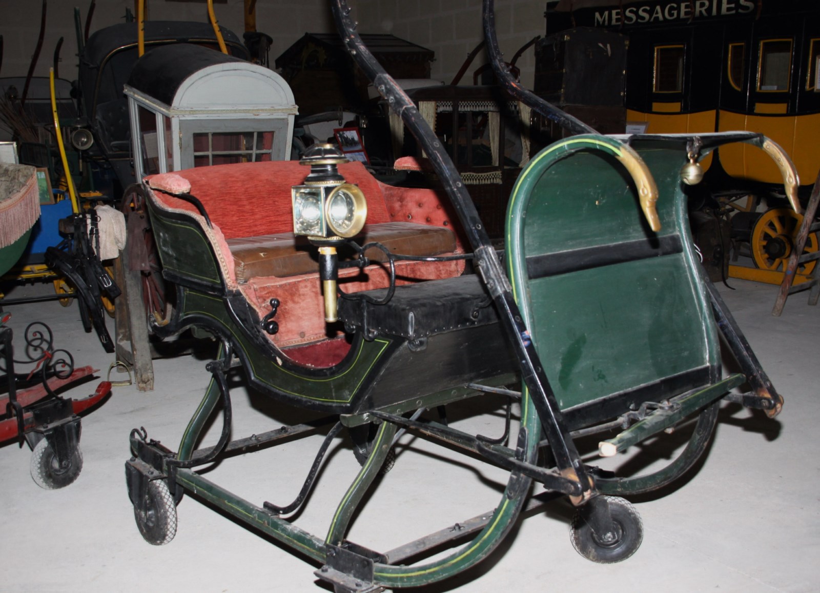 Véhicule bas, sans train ni roues, muni de patins recourbés à l'avant, utilisé comme moyen de transport sur la neige ou la glace.